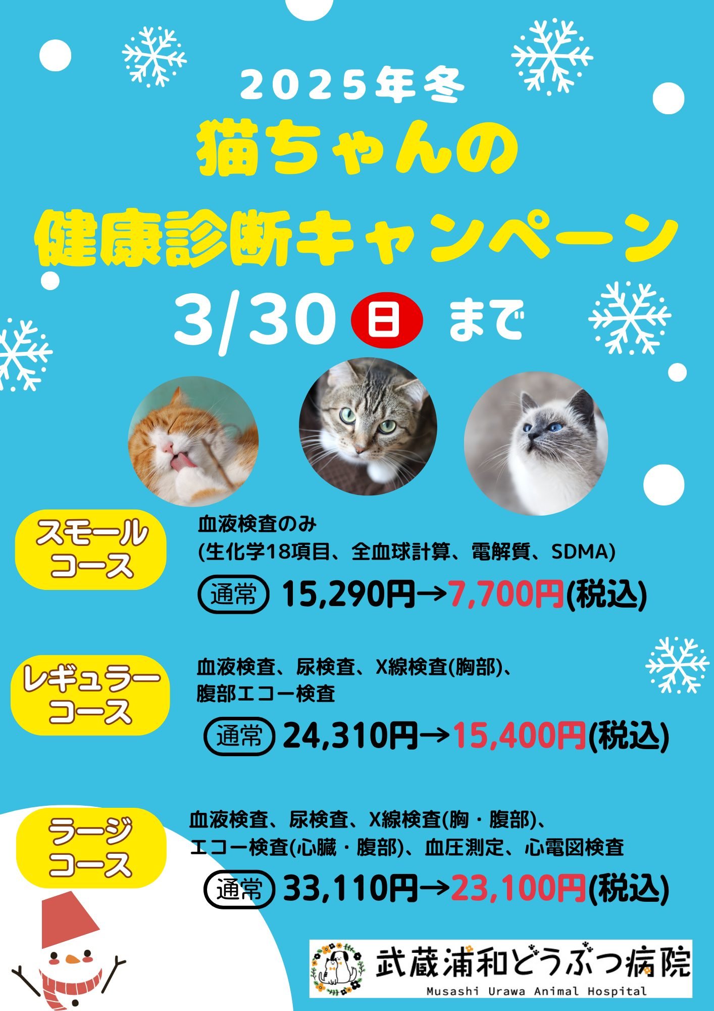 ネコちゃんの冬の健康診断キャンペーンのお知らせ⛄