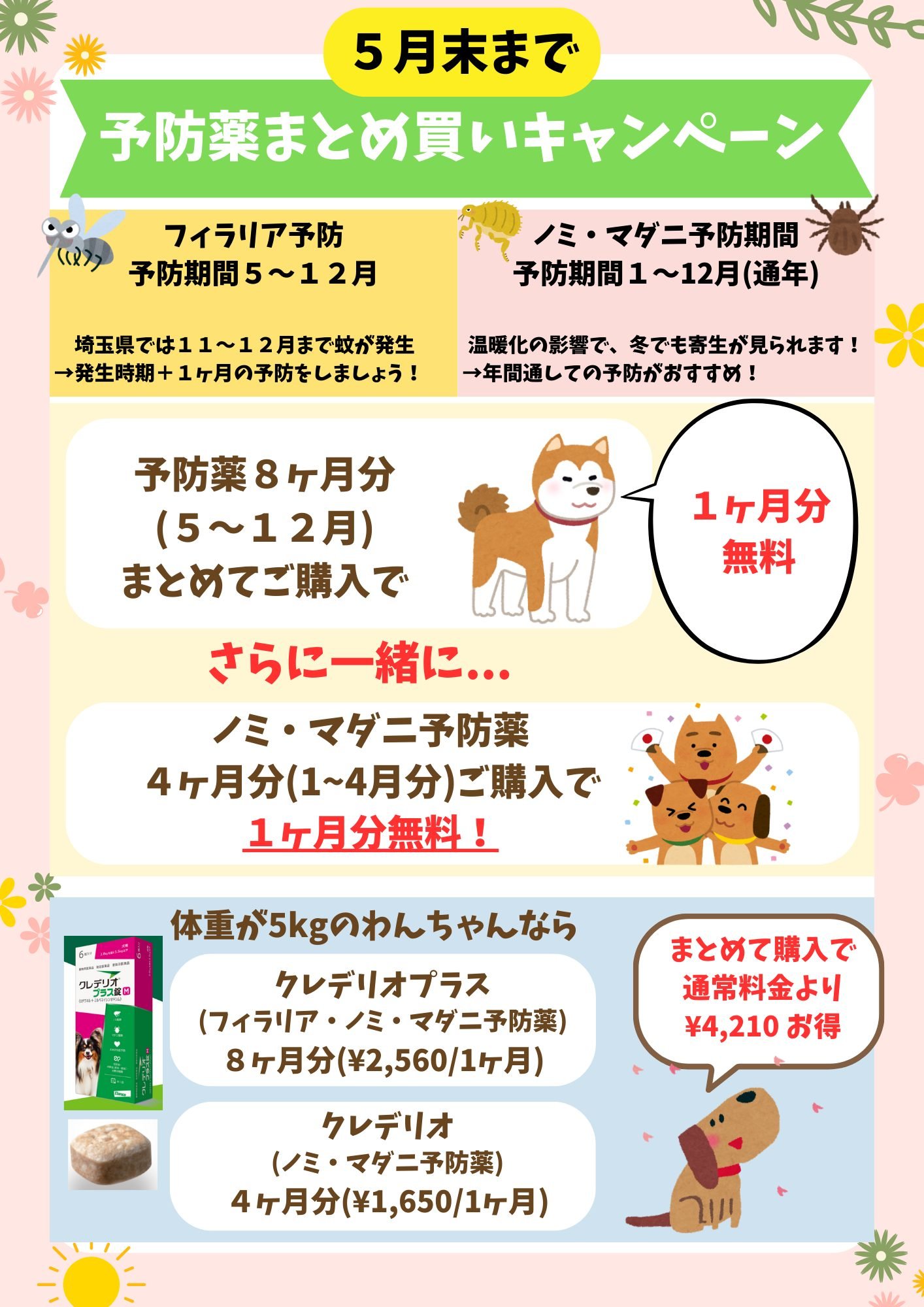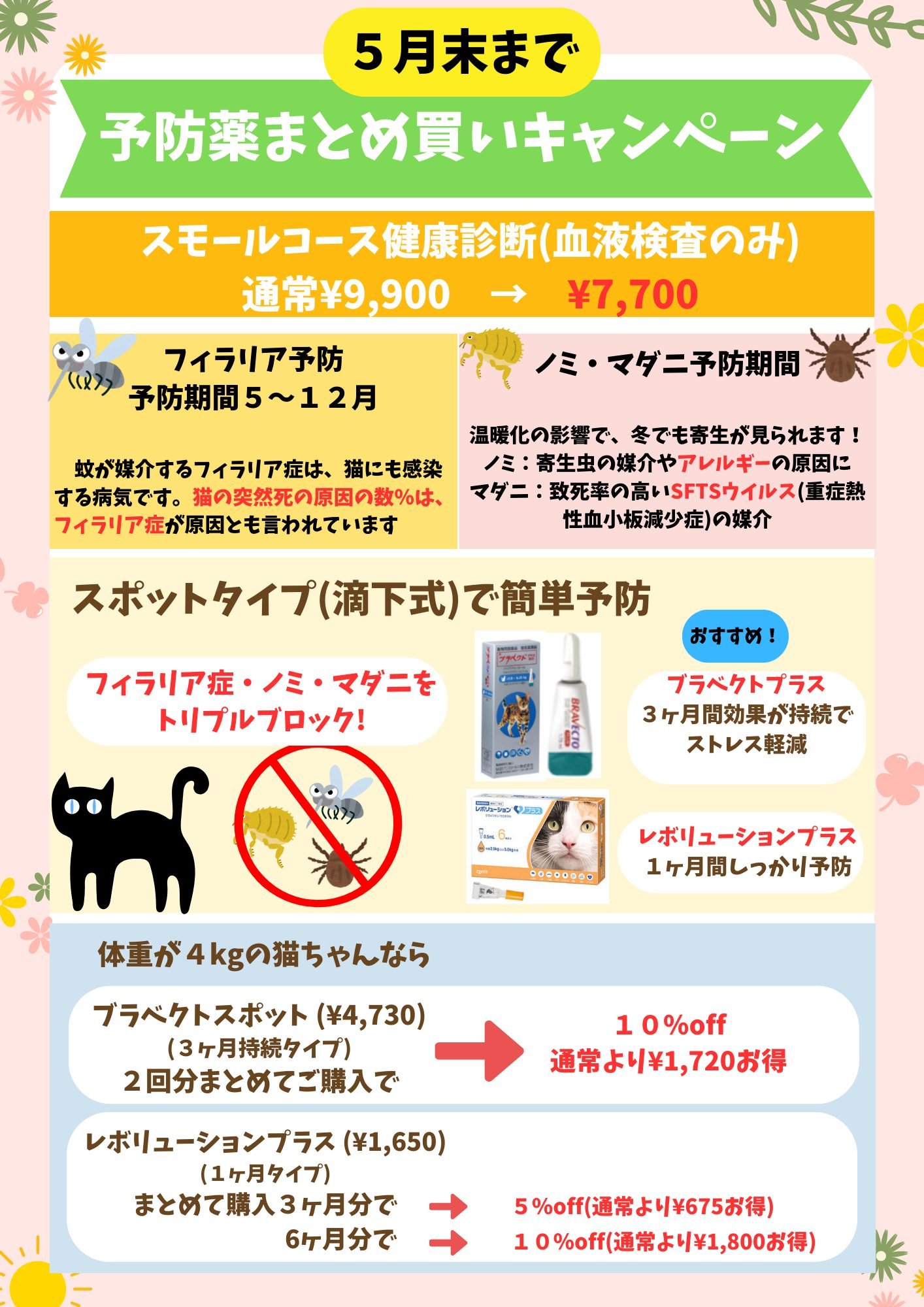 <春の予防薬・健康診断キャンペーンのお知らせ>